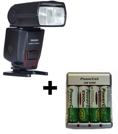 Product Highlights 2.4 GHz Transceiver with 328' Range Guide Number: 190' at ISO 100 and 105mm Zoom Range: 24-105mm (18mm with Panel) Output Range: 1/1 to 1/128 Tilts -7 to 90° & Rotates 270° Optical Slave Functionality Recycle Time: 3 Seconds Multi Mode for Firing Series of Flashes PC Sync Port Runs on 4 AA Batteries Mount Shoe Guide No. 190.29' (58 m) ISO100 at 105 mm position Exposure Control Manual Vari-Power Manual: 1/1 - 1/128 Bounce Head Yes, -7° to +90° Swivel Head Yes, 270° Coverage 18 mm - 105 mm (Full frame) Zoom Head Full frame: 24 mm - 105 mm Off Camera Terminal PC Recycle Time Approximately 3 seconds Flash Duration 1/200 - 1/20000 sec Flash-ready Indicator Yes Slave Timing Modes Instant Sync Skip Preflash Wireless Operation Method: RF Distance: Up to 328.08' / 100 m Wireless Communication Channels 16 Channels Wireless Groups 3 Groups Power Source 4x AA Alkaline, Rechargeable NiMH Batteries Dimensions (WxHxD) 2.4 x 7.5 x 3.1" / 60.0 x 190.0 x 78.0 mm Batteries Powercell AW8300/2300mah with Charger Featuring both a 2.4 GHz wireless radio transmitter and receiver, the Yongnuo YN560-IV Speedlite is a long range manual flash unit capable of triggering other flashes from up to 328' away as well as being triggered with the RF-603 and RF-602 wireless transmitters. The YN560-IV is powerful with a guide number of 190' at ISO 100 and 105mm. The unit is also quite versatile with a zoom range of 24-105mm, which is able to be expanded to 18mm with the built-in wide-angle diffuser. Additionally, this output can be adjusted from 1/1 to 1/128 power in 1/3 and 1/2 EV steps. Full bounce and swivel lighting is possible due to -7 to 90° tilt and 270° of rotation with the locking flash head. The flash can also be triggered optically with either instant sync or skip pre-flash options for simpler off-camera firing. A built-in PC sync port further enhances the flash's connectivity and a Multi mode allows for stroboscopic lighting effects. The flash runs on 4 AA batteries and has a recycle time of about 3 seconds. It comes with a protective case and a stand. Features 3 groups and 16 channels for wireless operation Can receive a wireless signal from YN560-IV, YN560-TX, RF-603 (I/II), and RF-602 Metal hot shoe for standard on-camera triggering Large LCD screen for viewing settings and making adjustments Socket for SF-18C or SF-17C external power pack Audible flash ready indicators offer different sounds based on flash status 100-1500 flashes from one set of batteries Automatically saves your current settings Built-in bounce card Color temperature of 5600K Eight levels of flash output from 1/1 to 1/128 with 29 individual settings Optical triggering range of 66-82' indoors or 33-49' outdoors