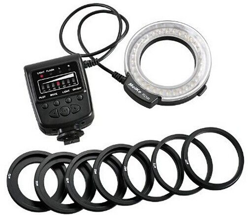 feature:The Led Macro Flash is the perfect choice for the photographer who requires shadow free illumination. It is designed for close up, macro, medical, scientific and forensic photography as the flash light source is positioned directly between the camera lens and subject providing an even illumination.Full innovation Led technology.More approach natural light use high quality led light.There are seven levels luminanceIt is meets the higher photography needs under the innovation functionLeft and right flash function make the object appeared third dimensionFit for macro shot, scientific research, medical and personal hobbies of photography.Mount the flash product on the lenses.1. Attached are equipped with52mm, 55mm, 58mm,62mm, 67mm, 72mm 77mm, seven different adapter ring.2. Press the annular light lock and place on the lens with adapter ring, loosen lock button, when annular light have locked in the adapter ring already.Four working mode:Light mode,Flash mode,L mode(Left half of the annular flash),R mode(right half of the annular flash).