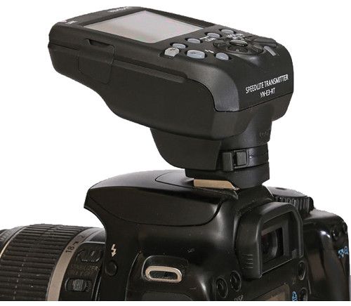 Convenience features include flash exposure lock, AF beam focus assist, modeling strobe and 9 custom functions. The YN-E3-RT transmitter will run for 10 hours of continuous use on AA/LR6 alkaline batteries. A power saving function shuts the unit down after being idle for 5 minutes to conserve batteries.