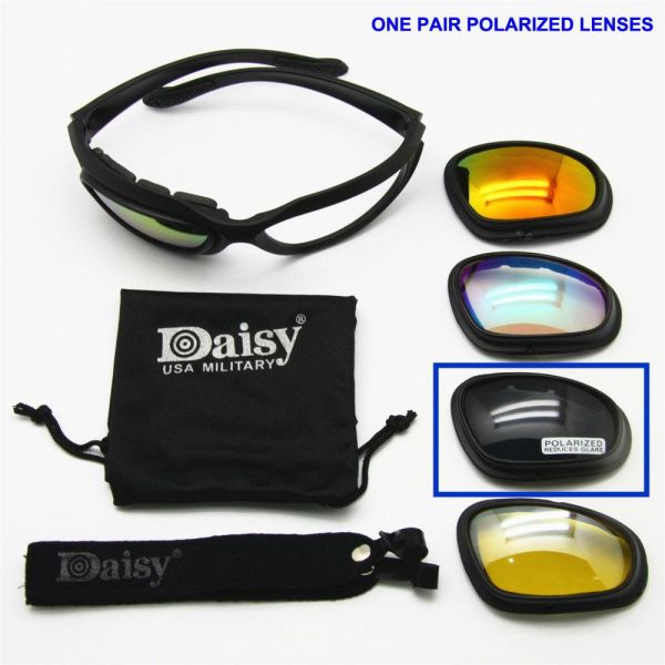Daisy C5 Military Goggles 4 Lenses Outdoor Sports Hunting Polarized Sunglasses