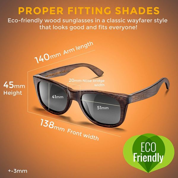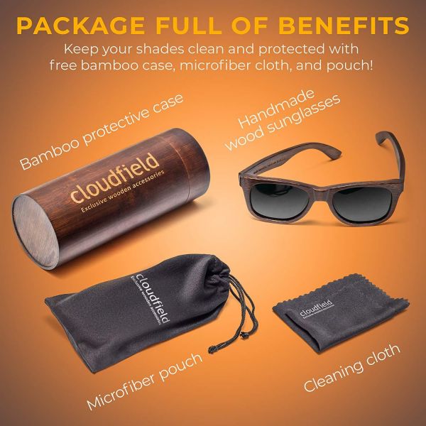 cloudfield Wood Sunglasses Polarized for Men and Women - Bamboo Wooden Wayfarer Style