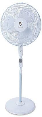 描述:- 16 inch stand fan with remote control features 3 speed settings and a 4-hour timer. Oscillates, tilts and height adjusts so you can put comfort where you need it. Stable, round base