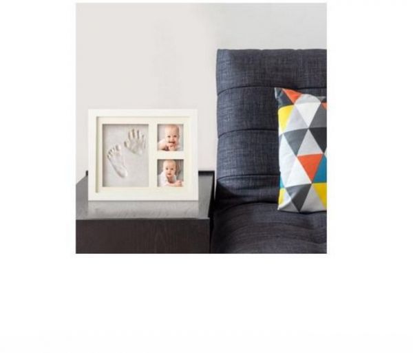 - HOLDS TWO PICTURES - Sturdy white baby frame holds two pictures and one clay impression for you to be creative!