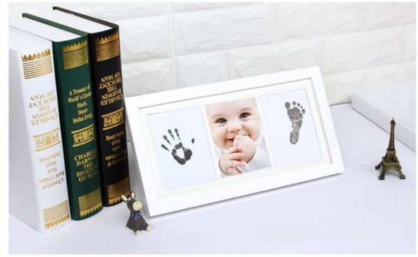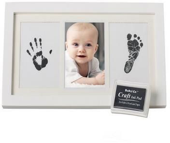 INCLUDES EVERYTHING YOU NEED - Solid wooden photo frame in white measures L 33 x H 18 x D 2CM. Quality real wood frame with safe acrylic glass sets easily on any surfaceADD YOUR BABY'S PICTURE - Baby hand and footprint kit features photo insert for standard 11 x 9CM photograph and positions it in the center so your baby takes the spotlightACID-FREE BEVELED MAT INCLUDED - Acid-free mat included in the baby footprint kit and keeps photo and baby prints safe for years.NO MESS AND QUICK TO MAKE! - Baby handprint kit comes complete with non-toxic ink pad designed to capture the finest detail of your baby's hand and feetREUSE THE INKPAD FOR OTHER PROJECTS - Create a treasured baby keepsake in minutes. Perfect for baby shower, baby registry, or baby gift for new parents