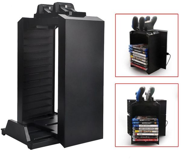 piece of cake. ATTENTION:ps4 console and controllers are not included - Easy gaming storage, you can put the console in the back of this stand, space saving!