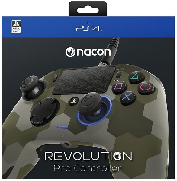 Nacon Revolution Pro is a fully customizable controller. This Nacon PS4 controller maximizes your gaming potential.The Nacon PS4 Revolution Pro Controller for PlayStation 4 is the perfect weapon to conquer the console gaming world. It has an 8-way directional pad that delivers excellent precision to elevate your game. This Nacon PS4 controller has dual analog triggers and dual shoulder buttons that offers excellent responsiveness. Furthermore, the dual analog sticks with 46 degrees amplitude deliver an incredibly high level of accuracy. This controller features a 3m detachable cable for a secure connection. Available in a camo green finish, this Nacon controller is developed and designed bearing in mind professional eSports requirements.