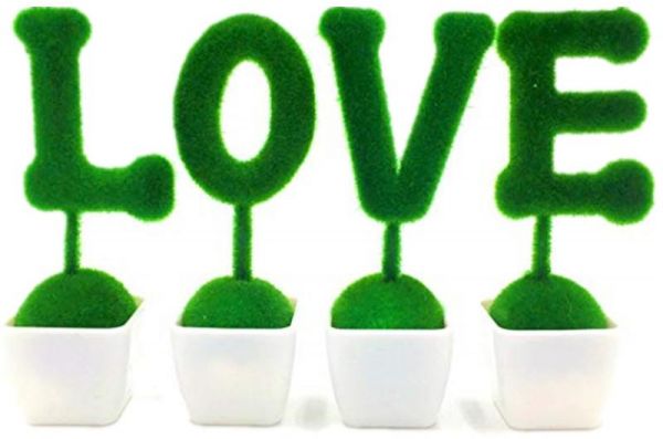 4 Artificial Fake Heart LOVE Plant Grass Flower Ceramic Pot Home Wedding Decor