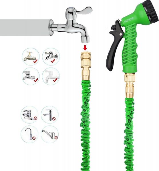 - 75FT Garden Hoses With Water Gun Telescopic Magic Water Hose Expandable1) Expands up to 3 times its original length2) Automatically contacts when water is turn off3) Light weight. Expandable Hose is the portable, compact hose that expands to a full size hose, but weighs less than a pound4) Super strong5) Easy to handle - Hangs and stores anywhere 6) Hose shrinks back to its original size ...