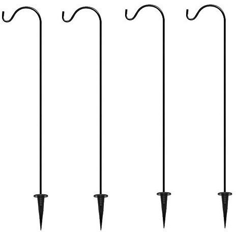 Set of 4 Sheppard Hooks wtih 4 Ground Stakes. Steel with black finish. Multi-use hooks for plants or yard ornaments. These hooks have adjustable height from 7 - 16 - 28 inches. Each hook holds a weight capacity of 5 lbs. With multiple sets you can decorate a driveway, pathway, deck or sidewalk. Use your imagination for party decorations. Steel stakes with powder coated finish in black. Comes as a set of 4 shepard hooks. Includes 4 ground stakes. Use for plants or yard ornaments. Adjustable height 7, 16, or 28 in.. Weight capcity: 5 lbs..