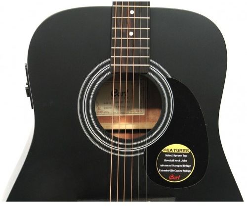 CONSTRUCTION: Dovetail Neck JointBODY: Dreadnought, Spruce Top with Mahogany Back & SidesNECK: MahoganyBINDING: BlackFRETBOARD: RosewoodSCALE: 25.6INLAY: White DotTUNERS: Die castROSETTE: DecalBRIDGE: RosewoodELECTRONICS: Cort CE304T with Ceramic pickupBRACING: Advanced X BracingCOLOR: Black SatinWITH BAG