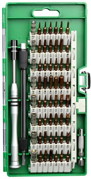 What You Get--56 screwdriver bits, aluminium driver, extension rod, flexible extension shaft,standard 1/4 inches driver adapter, organised case.