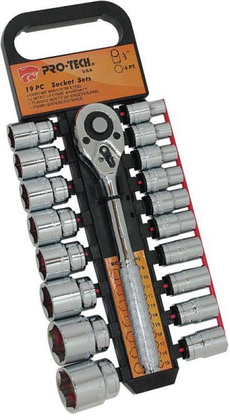 描述:Pro-tech 19 Piece Wrench and Socket Set with Holder is made from strong, long lasting and durable chrome vanadium steel. Professional quality tools with corrosion resistance.