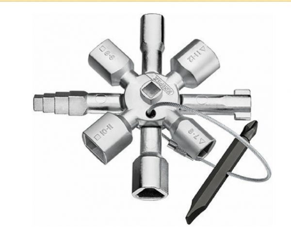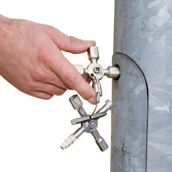 This tool is essential for control cabinets and shut off systems in the supply of gas, water and electricity. It truly is the key for use in technical installations in buildings to control air conditioning and ventilation systems, shut-off valves and main switchboards. Everyone should have this neat tool that attaches easily on a key chain or belt loop.