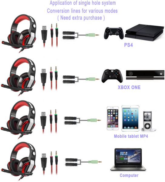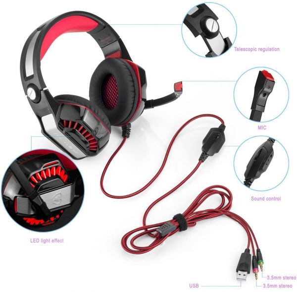 GM-2 3.5mm Game Gaming Headphone Headset Earphone Headband with Microphone LED Light for Laptop Tablet Mobile Phones ps4, Black Red