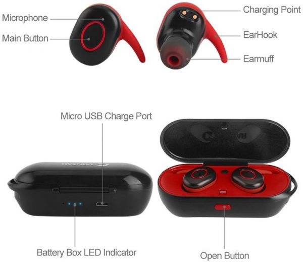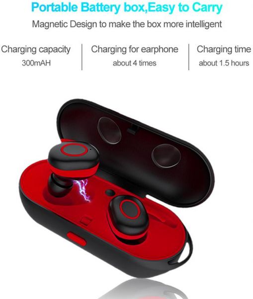 3. The charging base built-in 300mAh polymer battery, maximum charge the headset 5 times.