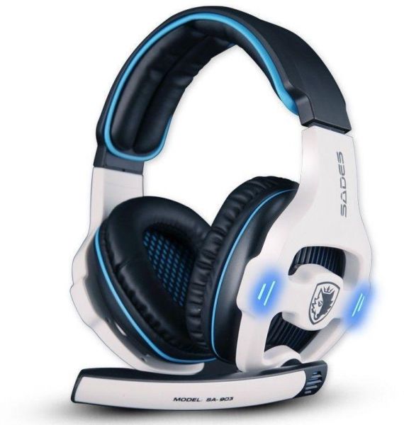 White And Blue USB 7.1 Surround SADES SA-903 Headset Gaming Stereo USB Plug For PC Laptops