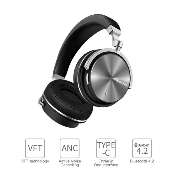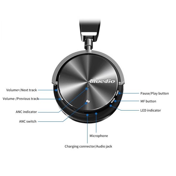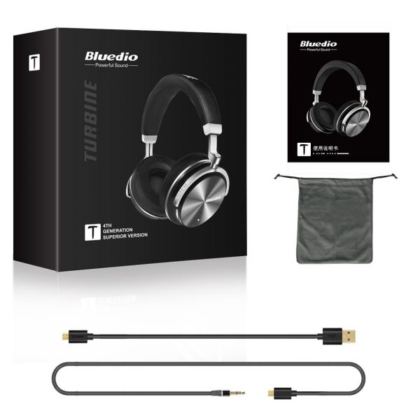 T4S is the superior version of Turbine 4th generation. Details and sound quality are fully upgraded. Adopting all titanized 57mm diaphragm and Bluedio Vector Flow Technology to strengthen the bass. Simply turn on the ANC function, you can stay away from noise and just enjoy music. What's more, it uses TYPE-C three in one interface which is easy to control and supports rapid charging when headphone is in low battery condition, and it's the first time to use the exquisite laser carving process.