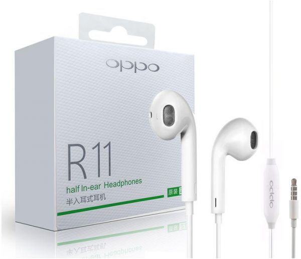 Oppo R11 Half In-Ear Headphones In-Ear Earphones With Mic 3.5mm Jack - White