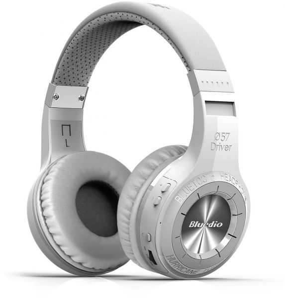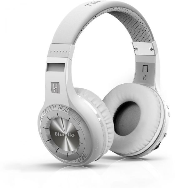 FEATURES: BLUEDIO TURBINE HURRICANE H BLUETOOTH 4.1 WIRELESS STEREO HEADPHONES HEADSETAFTER EXTENSIVE RESEARCH, BLUEDIO HAS FOUND THAT CURRENT HEADPHONES ON THE MARKET HAVE LOTS OF COMMON DEFECTS, SUCH AS SERIOUS NOISE, FLAT SOUND, STUFFY APPEARANCE, ETC. FOR THESE REASONS, AFTER 3 YEARS OF R&D, BLUEDIO HAVE COME UP WITH THE BLUEDIO TURBINE HURRICANE H HEADSET. THE BLUEDIO TURBINE HURRICANE H HEADSET IS COMPATIBLE WITH IOS, ANDROID, AND WINDOWS. ICONIC POWERFUL BASS RESONANCE57MM ULTRA-LARGE DYNAMIC DRIVERS, TURBINE STYLE HOUSING, AND BLUEDIO'S ICONIC SURGING LOW-FREQUENCY SHOCK LET YOU FEEL DEEP BASS RESONANCE FOR SUPERIOR SOUND QUALITY. ULTRA-LONG OPERATION AND CAREFREE CALLING FROM BLUETOOTH 4.1WITH THE ROBUST HIGH SPEED CPU OF BLUETOOTH 4.1 OPERATING SYSTEM, THE BLUEDIO TURBINE HURRICANE H BOASTS A LONG USAGE TIME OF 40 HOURS OF MUSIC, 45 HOURS TALK TIME, AND 1625 HOURS (APPROXIMATELY 67 DAYS) STANDBY TIME. ACOUSTIC ECHO CANCELLATION AND NOISE REDUCTION REDUCE AMBIENT NOISE WHILE SPEAKING. CUSTOMIZED FUNCTIONAUDIO SHARING ALLOWS YOU TO CONNECT TO ANOTHER H HEADSET VIA AN AUDIO CABLE, AND SHARE MUSIC WITH YOUR FRIENDS (* IT IS RECOMMENDED THAT HEADPHONES WITH IMPEDANCE OF 32Ω OR HIGHER BE USED). SIMULTANEOUSLY CONNECT TWO BLUETOOTH DEVICES, CONNECT WITH YOUR PHONE AND TABLET SEAMLESSLY, AND LISTEN TO MUSIC AS YOU PLEASE! COMFORTCUSTOM FIT SUPRA-AURAL SOFT EARMUFFS AND ARTIFICIAL PROTEIN LEATHER OF EARMUFFS SIMULATED TO HUMAN SKIN TEXTURE ENSURE LONG-LASTING COMFORT. CONVENIENCEJUST PLUG IN WITH AN AUDIO CABLE (SOLD SEPARATELY), AND LISTEN TO YOUR FAVORITE MUSIC TRACKS. THE HURRICANE H ALSO HAS VOICE PROMPTS IN 4 LANGUAGES (ENGLISH, FRENCH, SPANISH, AND CHINESE). SPECIFICATIONS: Drivers: 57mm speaker X 2 Transducer type: dynamic Bluetooth version: V4.1 Frequency range: 2.4GHz-2.48GHz Operating distance: up to 10m (free space) Bluetooth profiles: A2DP、AVRCP、HSP、HFP Impedance: 16Ω Frequency response: 20Hz-20kHz Sensitivity: 110dB Distortion: Music playtime: up to 40 hours Talk time: up to 45 hours Standby time: up to 1625 hours Charging time: about 2 hours Operational temperature: -10 to 50°C