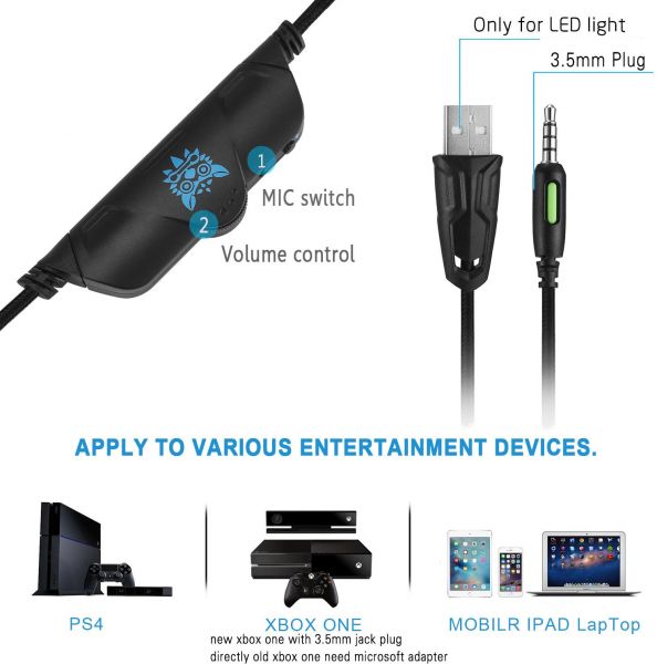 ULTRA STRONG COMPATIBILITY. ONIKUMA gaming headset works on Nintendo Switch (audio), Nintendo New 3DS LL/3DS (audio), Nintendo 3DS LL/3DS (audio), Windows PC, Mac OS PC, iOS device, Android device, PS4, PS vita, PSP and Xbox One. Xbox One needs accessory to support. This headset is capable of various games. Practicing your aim, your movement, your spatial awareness, your ability to track ultimates; killing zombies, destroying the boss, this headset is the your BFF in game playing.