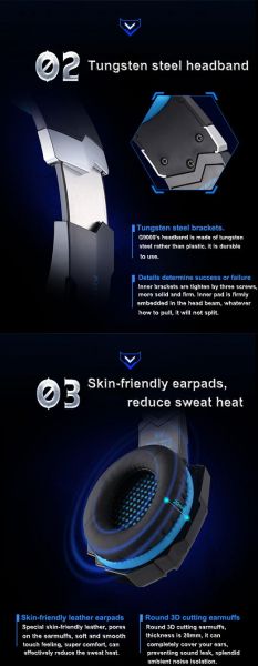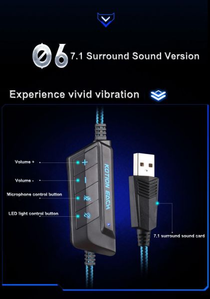 描述:This KOTION EACH G9000 is a primary kind of gaming headset, which brings you vivid sound field, sound clarity, sound shock feeling, capable of various games. Its super soft Over-ear pads is more comfortable for long time wear, and it is a great headphones for game player!