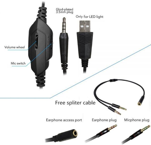 Headset interface: 3.5mm(4pin) + USB (USB for LED light)