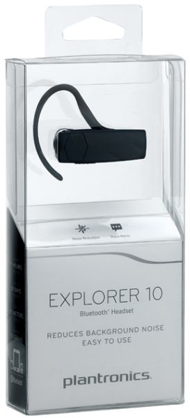 The Plantronics Bluetooth Explorer 10 Mobile headset is easy to use with all Bluetooth enabled phones. It offers up to 11 hours of talk time and even reminds you when it’s time to charge. Plus, its ergonomic design helps fit this headset on either ear.
