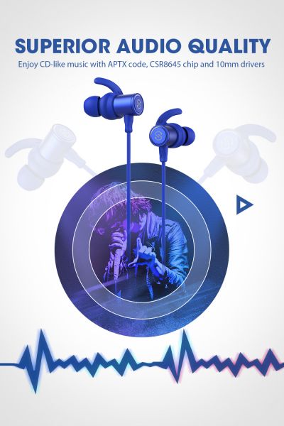 描述:【Super Sound quality & aptx】: High-fidelity stereo sound quality with aptx codec and CSR8645 bluetoth chipset. These headphones are compatible with most smartphones, iPhone and Android.