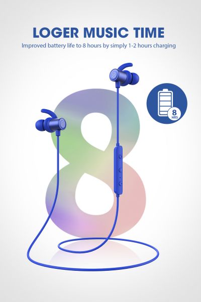 【Long-Lasting Usage & Built-in Magnetic Design】: Up to 8 hours talk time / music time (Playtime varies according to volume level and audio content). It also has up to 100 hours of standby time and charges in 1-2 hours. You can attach the two headphones together when not using, and wear like a necklace around your neck, a convenient way to carry around when you don't need them.