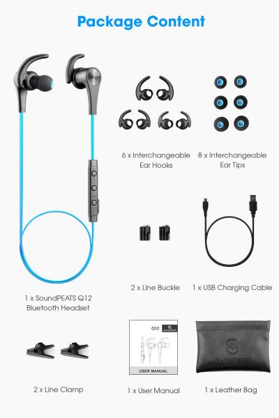 - [SECURE & COMFORTABLE FIT] - SoundPEATS Q12 Bluetooth headphones are ergonomically designed with oblique angle to fit your ear canal better and reduce noise. In addition, with 4 pairs of ultra soft ear tips (XS/S/M/L) and 3 pairs of ear fins included, the earphones ensure comfortable and secure wearing and using experience.