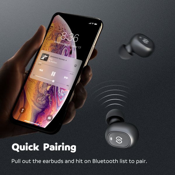 - [ONE-STEP PAIRING] - Born to offer you every convenience, the earbuds are built with very easy operation. Pull out the earbuds from charging case and hit on Bluetooth list. That's how easily you get the earbuds paired.