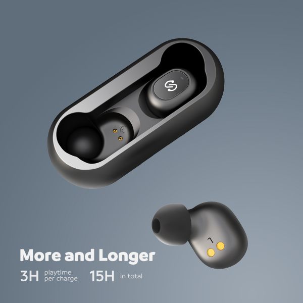 - [EXTENDED PLAYTIME] - Compact and lightweight magnetic charging case for you to carry the earbuds around. 3.5 hours playtime per charge and 15 hours in total, the earbuds strive to keep you company longer.