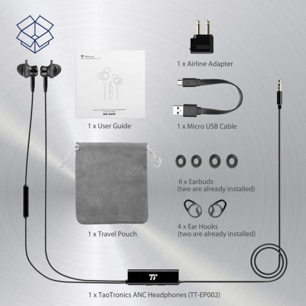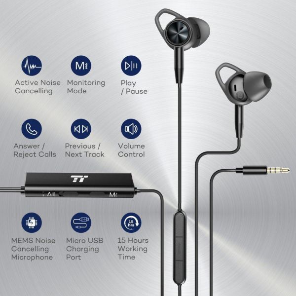 TaoTronics Active Noise Cancelling Headphones, Wired Headset In Ear Stereo Awareness Monitor Earphon