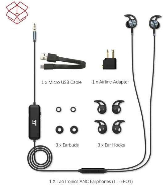 TaoTronics EP-01 offers Active Noise-Cancelling Technology. It can reduce background noises by up to 30dB with the advanced ANC technology to let you enjoy uncompromising powerful audio and give you the music you love for work, travel, and relaxation. The premium stereo sound quality with clear and detailed sound reproduction and a high-fidelity microphone help the caller hear you clearly. With adjustable ear buds and hooks, you’re guaranteed the most comfortable listening experience. The TaoTronics EP-01 can deliver super-long battery life, reaching 15 hours. KEY FEATURES AND BENEFITS Active Noise-Cancelling Technology Reduce background noises by up to 30dB with the advanced ANC technology to let you enjoy uncompromising powerful audio and give you the music you love for work, travel, and relaxation. The airline adapter allows you to enjoy favorite music without any distractions when you are flying. High-Fidelity Sound Quality The premium stereo sound quality with clear, detailed sound reproduction and a high-fidelity microphone help the caller hear you clearly. Incredible Battery Life Enhanced and boosted with a 140mAh battery, enjoy 15 hours of pure, continuous playback or voice chat. Comfortable & Stable Feature ergonomic earbuds, seamless in-ear design, and soft wingtips for a comfortable and stable fit. Easy & Full Control The three-button in-line remote control for full audio playback allows for volume adjustment, track selection, and play/pause functionality. Work for Most Devices The inline smart remote and microphone on the cable are compatible with most smartphones and portable players with 3.5mm audio jack. SPECS General: -Cable Length: 140 cm / 4.59 ft -Weight: 14.6 g / 0.5 oz -Connector: 3.5 mm stereo mini plug Headphone: -Driver: Dynamic -Driver Size: Not Specified by Manufacturer -Rrequency Reponse: 20Hz – 20kHz -Impedance: 32Ω Active Noise Cancellation: -Noise Reduction Coefficiency: 100Hz – 500 Hz -Run Time: 15 Hours -Recharge Time: 2 Hours FAQ Q: Do they always need to be charged to use? A: No. If you only need to use the earbuds, just plug them into your device via the included audio jack and they will work for you. The noise cancellation can function only when the module has power. Q: I usually work in noisy places and want to get a pair of noise-cancelling earphones. How is their active noise cancellation? A: Pretty good. With the active noise cancelling technology, these earphones help reduce outside noises to a large extent. Q: Can I turn off the noise cancellation while listening to music? A: Sure. Whether the active noise cancellation is on or off, these earphones work fine. Q: Are they comfortable to wear? A: Yes. The soft rubber eartips can go deep into my ear canals, and the flexible wingtips secure earbuds stably in my ears. They combine to provide me with a comfortable and stable fit. Q: Are there interchangeable eartips? I have relatively small ears and need a little smaller eartips. A: They come with three pairs of eartips and wingtips which are suitable for ears of most people. Q: Can I use them to take calls? A: Yes. The microphone for phone calls stays at the back of the inline remote. Brand : Taotronics Manufacturer Number : Taotronics Color : Black Model Number : TT-EP01 Connectivity : Wired Compatible with : All Type : In Ear Microphone included : Yes Noise Cancelling : No Are batteries needed to power the product or is this product a battery : No Is this a Dangerous Good or a Hazardous Material, Substance or Waste that is regulated for transportation, storage, and/or disposal? : No External Product ID Type : UPC-A UPC-A : 605929164866