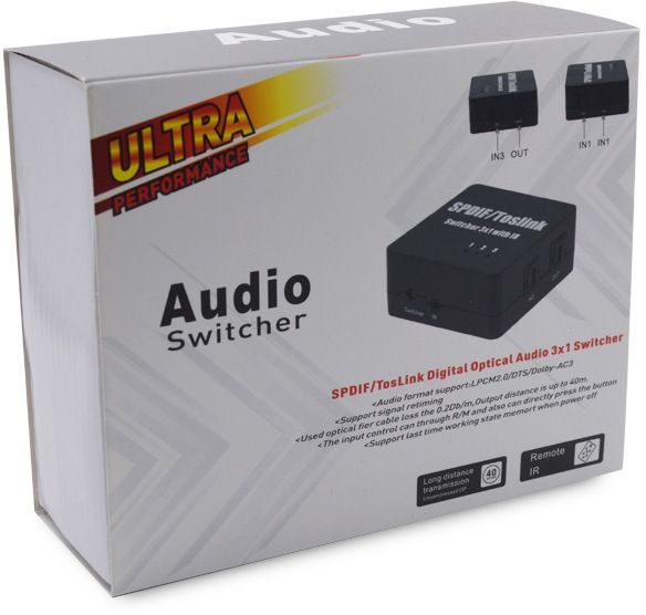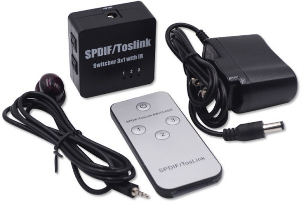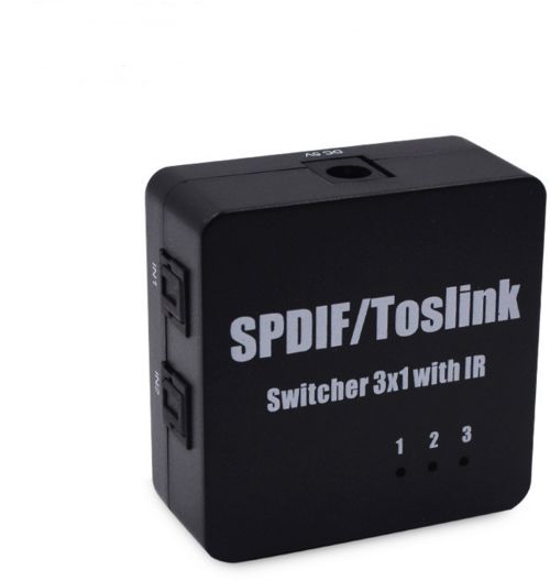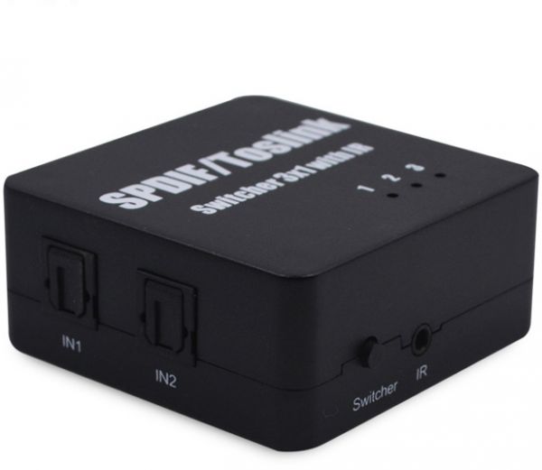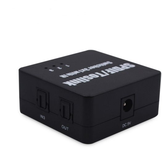 * Three-way optical audio inputs switch to one output; No loss of quality.