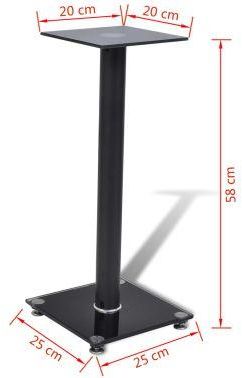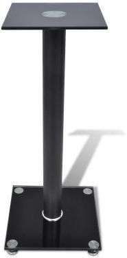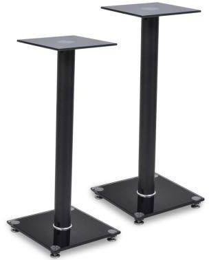 This pair of speaker stands has been designed for monitor speakers. The top and base plates of the stand are made of tempered glass. Thanks to the large glass surface and the sturdy pillar, your speakers are sturdily supported. The modern elegant design blends well with any contemporary home environment. The four round spikes under the base plate help to reduce vibration and prevent your carpet or wood floor from being flattened or damaged by the base plate. They also make lifting of the stand easier. 2 small cable holes are cleverly placed on the ends of the pillar, which will help to lead the cables neatly away. With a robust construction and a modern design, this speaker stand set will absolutely be an eye-catcher in your home.