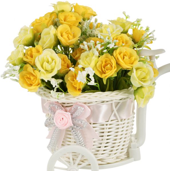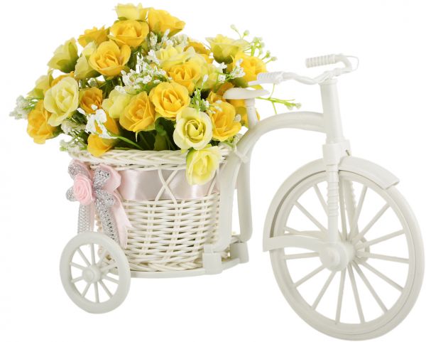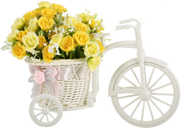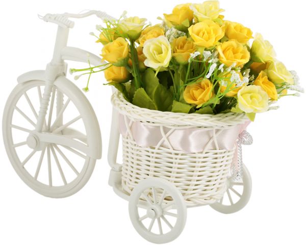 - Set Includes: Bike Vase, 2 foldable bouquets of artificial flowers