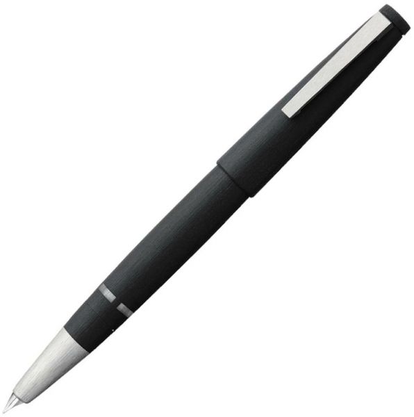 The Lamy 2000 series Fountain Pen is made from a combination material of fibreglass-reinforced Makrolon and stainless steel with a brushed effect. Features a platinum finished 14 carat gold nib that is hand polished and semi-hooded to prevent ink drying when left uncapped available in Extra Fine Fine Medium or Broad point sizes. This pen has a piston filling system with a large ink capacity (uses bottled ink only).
