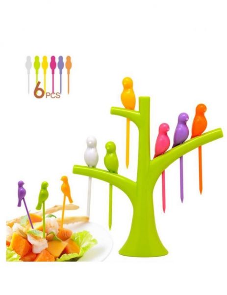 Birdie Fruit Fork Birds On The Tree - 6 Pcs - Green