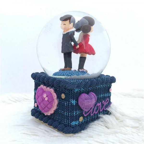 Crystal Ball Music Box With Hand Cranked Snowflake Glass Snow Ball Music Box With Different Lights