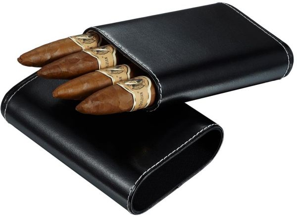 One of the highest quality offerings in our cigar case line, the Todd sets the benchmark in terms of cigar protection and style. Covered on the outside in genuine black leather, the interior of this fantastic case is lined with cedar wood, every cigar's greatest friend when it comes to freshness. This strong wood also prevents any kind of crushing to occur, adding further protection to an already amazing shell. Sleek in looks as design, the Todd is the best of the best. Length 5. 96 inches Width 3. 87 inches Height 1. 4 inches Weight 6. 84 ounces Materials Genuine Leather Cedar Wood Finish Black Attributes Holds Up To 4 Cigars Holds Up To 60 Ring Gauge 1 Year Warranty Crush Proof Interior Cedar Lining Adjustable Length