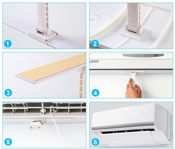- Installation: Remove the double-sided tape from the mounting plate, stick it under air conditioning, and press gently to confirm that the next step is done 24 hours after pasting. The connecting rod is fixed in the card slot of the fixing plate, and it is arranged to prevent the falling line