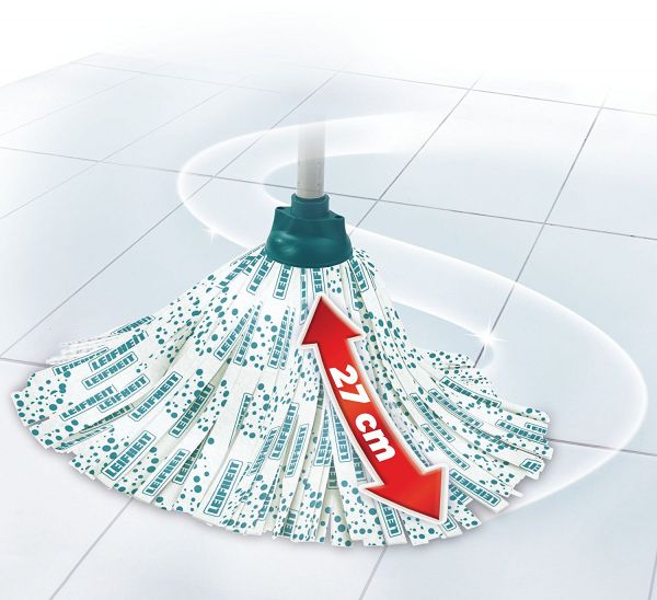 Leifheit Classic Mop Set from as a flexible mop head of absorbent viscose strips that remove dirt and water in a flash, leaving more time for the finer things in life. This floor cleaning mop set includes a handy 3-gallon (12-litre) bucket with wringer attachment for wringing the mop from standing. This cloth strip-style of mop is ideal for wiping large areas quickly and cleaning corners, stairs, and closely around furniture and table legs and cleaning those hard-to-reach corners. Its viscose strips are 10.6 inches long (27 cm) and suited to all hard floor types like tiles, stone, or PVC. The removable microfiber mop head can be washed at 140 degrees F (60 DegreeC). The Leifheit Classic Mop's stable 3-piece handle is made of steel and is 47 inches long (120 cm).