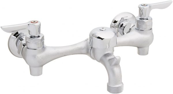 - 3" Cast brass spout- Vacuum breaker- Integral supply stops- Vandal-resistant lever handles with hot & cold indicators- 1/2" Female NPT inlets on 8" centers- Bucket hook- 3/4" Threaded hose end- Includes wall escutcheons Replaces 8340.2