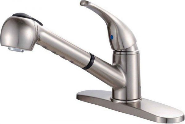 136952 Features: -Satin nickel finish. -Premium non metallic. -Resists tarnishing and corrosion. -Vacuum breaker. Product Type: -Standard kitchen faucet. Handle Finish: -Satin nicke. Material: -Brass/Plastic/Acrylic. Dimensions: Overall Faucet Width: -10". Overall Faucet Height: -8.25". Overall Faucet Depth: -9". Overall Product Weight: -6.6 lbs. Maximum Faucet Centers: -8".
