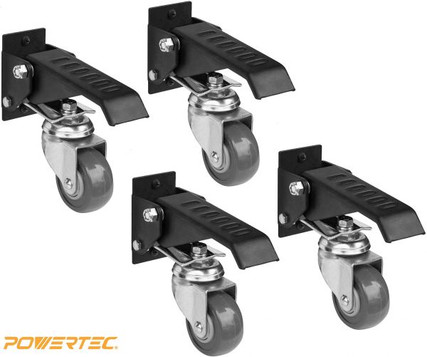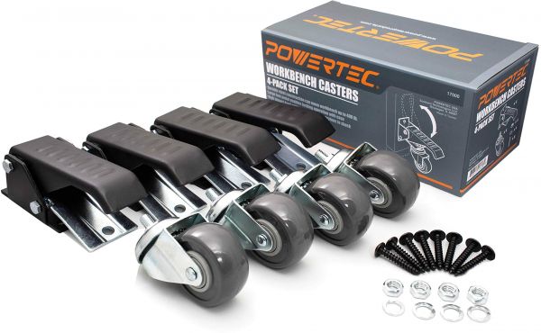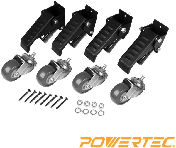 The POWERTEC Workbench Caster 4-pack Set is the perfect solution for easily positioning your heavy workbench to any desired area in your shop. Simply push down on the foot pedals to elevate your workbench off the floor (3/4-Inch), move to preferred location, then lift up foot pedal to lower table firmly back onto the floor. Each 2-3/8" urethane caster can support 100 lbs. (400 lbs. combined capacity). Experience ease of movement with caster's 360 degree pivoting action. All mounting hardware included.