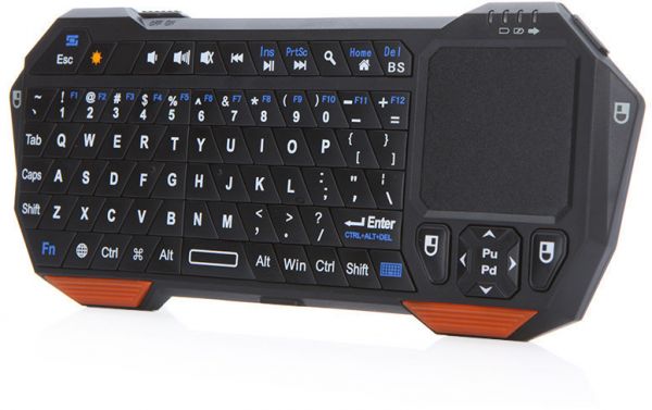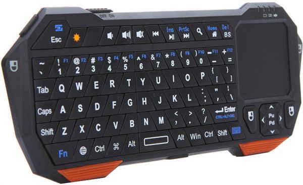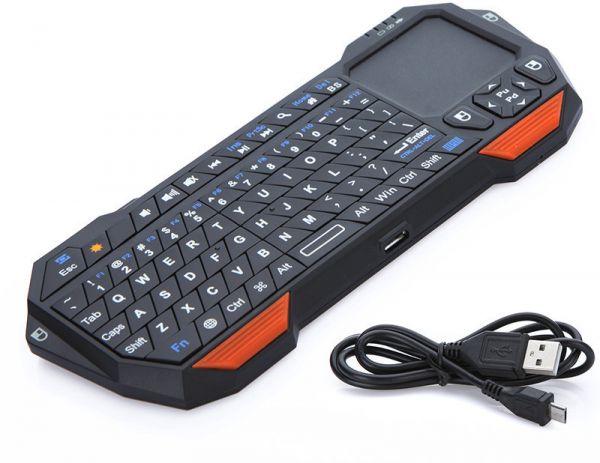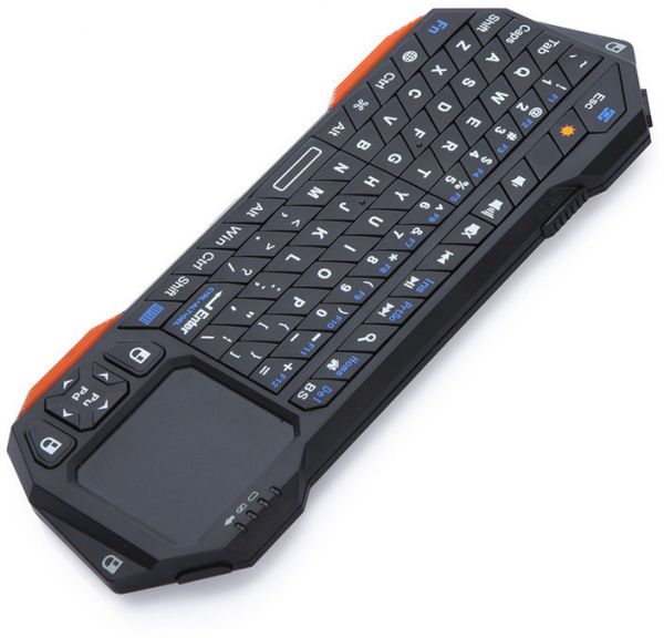 Features: 3 in 1 function: keyboard, mouse and touchpad. Real QWERTY full function mini keyboard. Bluetooth connection makes you enjoy wide range wireless control. Real touchpad: ultra sensitive and multi-touch. Backlit for operation in dark environment. Unique page up and page down key for convenient presentation. Built-in rechargeable lithium battery supports long time working. Short charge time: about two hours can fully charge the battery. The LED indicators are designed for signal of pairing status, battery indicator, caps lock status, etc.