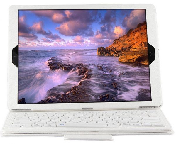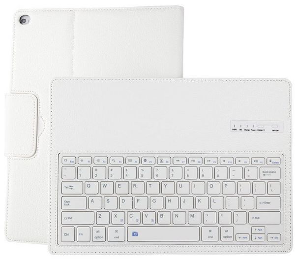 White Detachable Bluetooth Keyboard Stand Case Pu Leather Cover For 12.9 Inch Ipad Pro