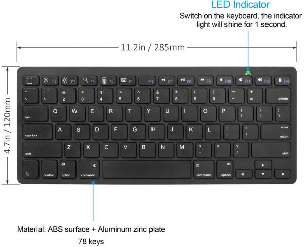 - Indicator Light: The power indicator will shine when you switch on the keyboard, and will go out after 1 second.