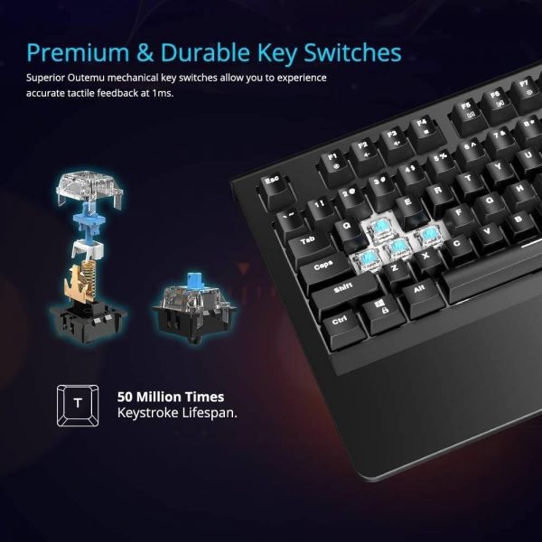 Tronsmart Mechanical Gaming Keyboard, RGB Backlit Keyboard, Clicky Gaming Mechanical Switch Keyboard